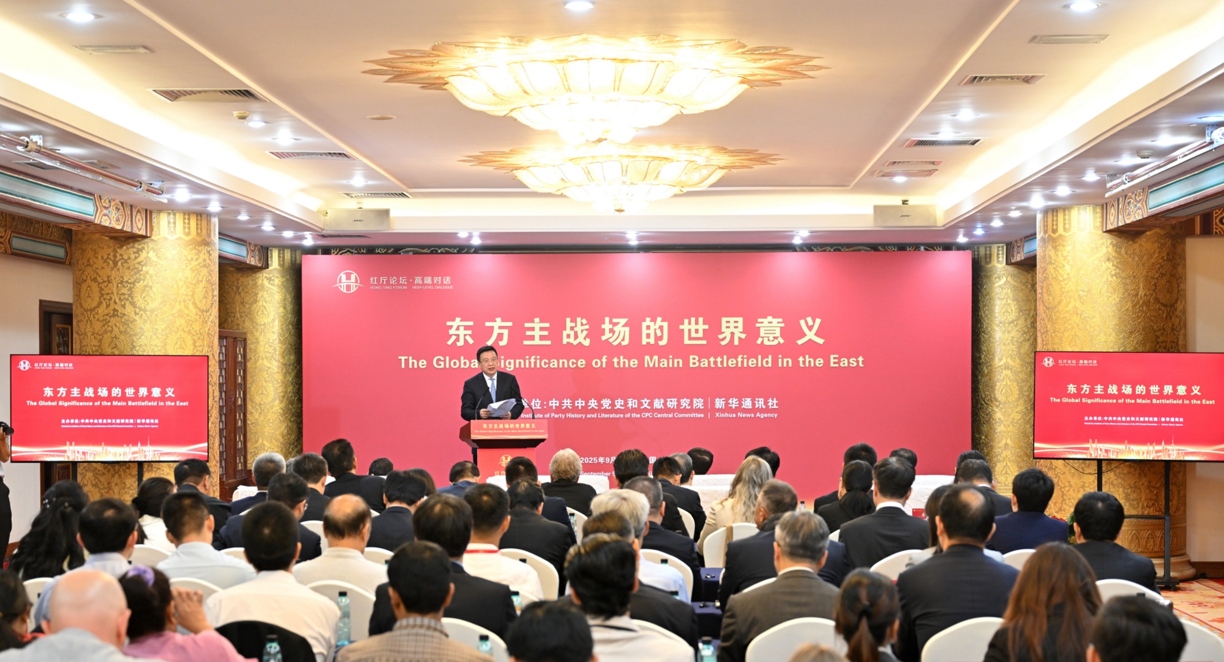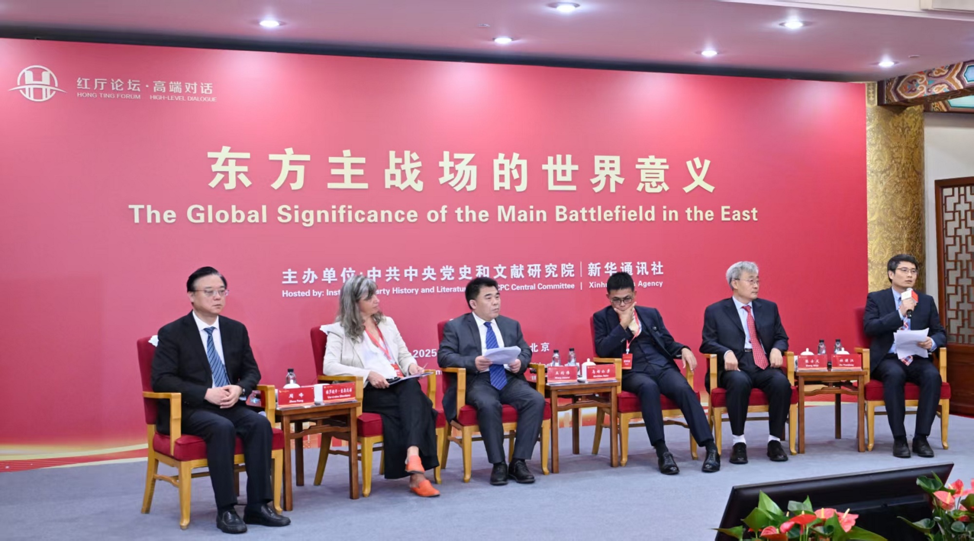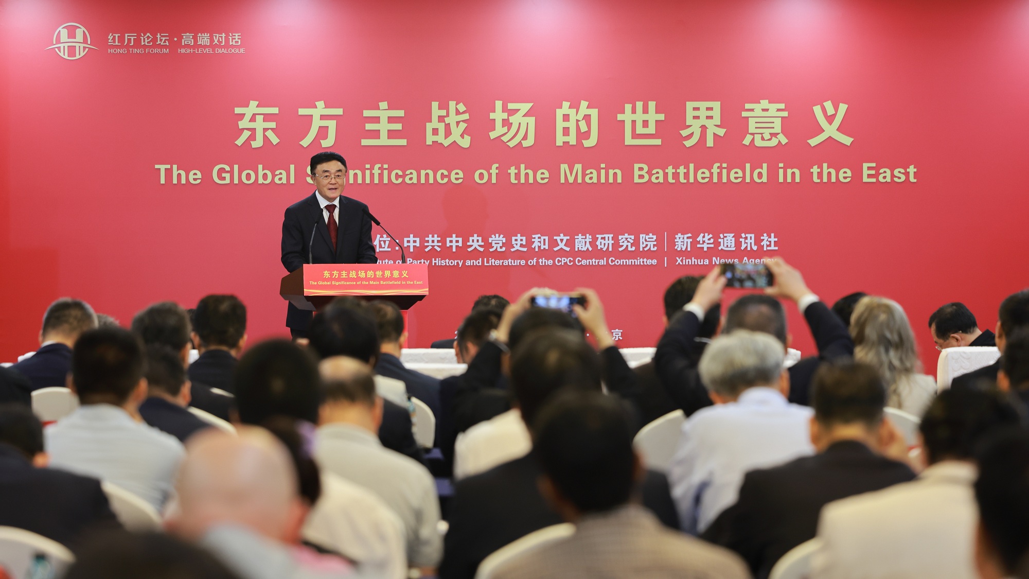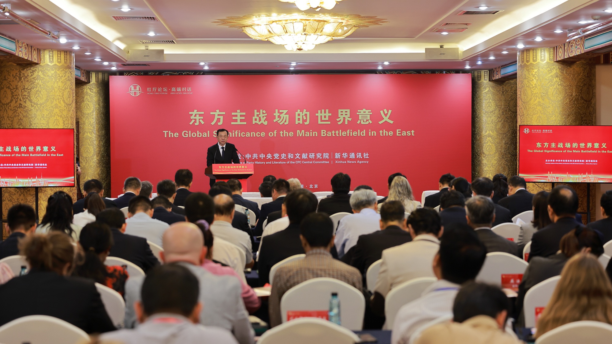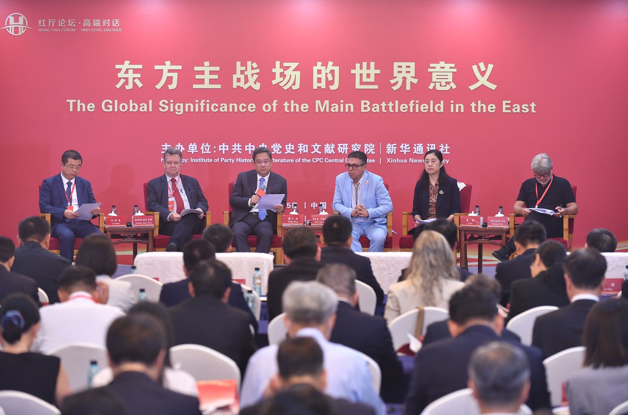 为深入学习宣传贯彻习近平总书记在纪念中国人民抗日战争暨世界反法西斯战争胜利80周年大会上发表的重要讲话精神,第一时间向国际社会重点宣介习近平总书记关于世界反法西斯战争,特别是关于东方主战场的重要论述,中央党史和文献研究院与新华社于9月5日上午联合主办“红厅论坛·高端对话:东方主战场的世界意义”国际研讨会。